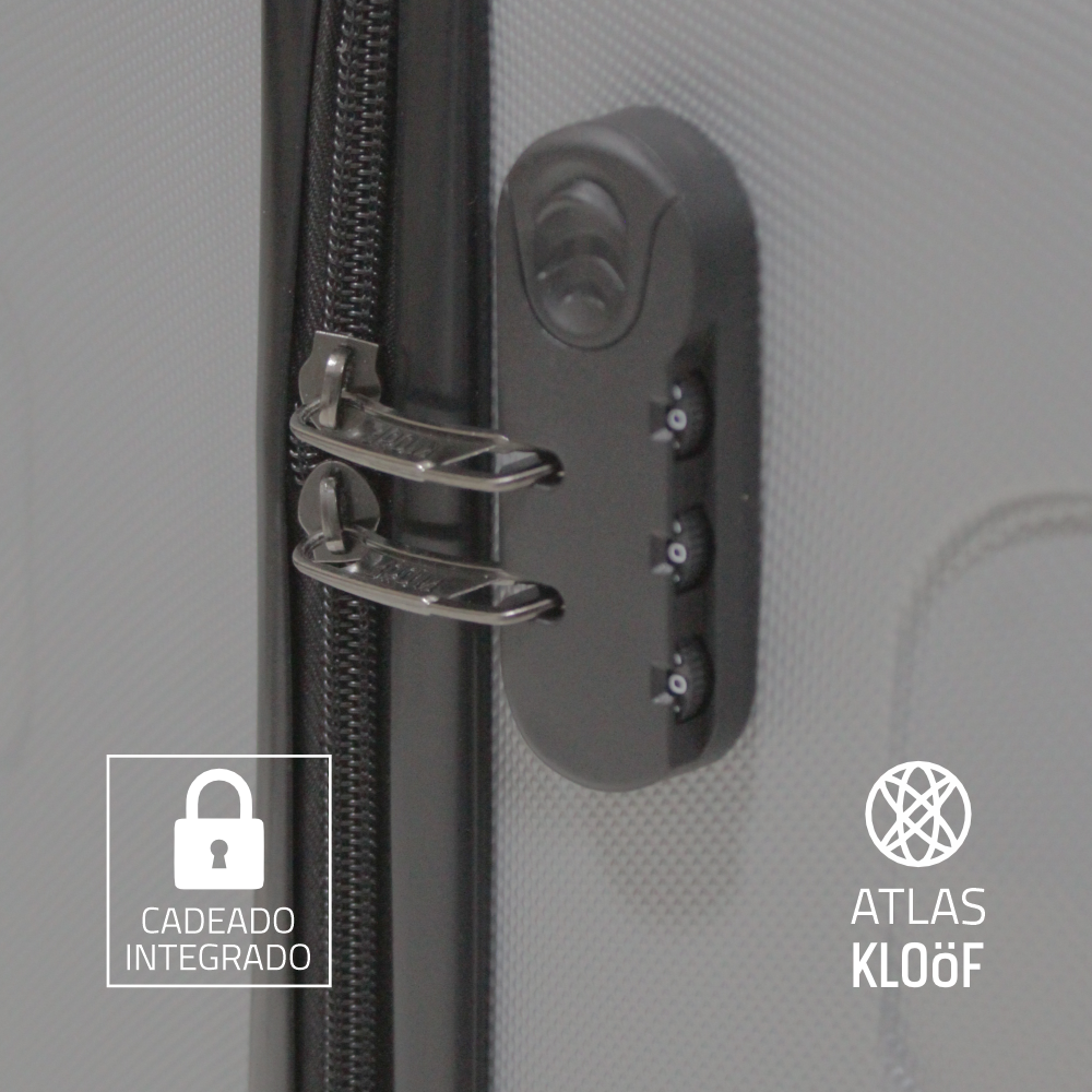 Conjunto premium com 2 malas de viagem Atlas. Em ABS, garante sofisticação e resistência. Possui rodas duplas 360°, alça de mão, puxador ergonômico, alça retrátil ajustável, cadeado com segredo numérico. Na parte interna, amplo compartimento, forro personalizado em tecido, cinta elástica com trava e bolso telado em zíper.